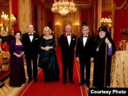 U.K. - L to R: Nouneh Sarkissian, Armen Sarkissian, former Prime Minister of Armenia, Duchess of Cornwall, The Prince of Wales, Serzh Sarkisian, President of Armenia, and Garegin II Catholicos of All Armenians, Windsor Castle, 10Feb2010
