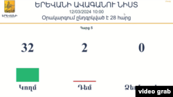 Ընդդիմադիր երկու խմբակցությունները՝ «Մայր Հայաստանը» և «Ազգային առաջընթացը» դուրս եկան դահլիճից՝ բոյկոտեցին, որպեսզի քվորում չլինի, սակայն «Հանրային ձայն» խմբակցության երկու անդամները մասնակցեցին և դեմ քվեարկեցին։ Անկախ նրանից, որ նրանք դեմ քվեարկեցին, նախագիծն ընդունվեց։