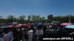 Այսօր մի քանի անգամ կարճ ժամանակով փողոց փակած ակցիայի մասնակիցները ընթացքում պահանջում էին, որ նախ դեսպանատան աշխատակիցը դուրս գա իրենց հետ խոսի, հետո կառավարությունից որևէ ներկայացուցիչ իրենց մոտենա: Բայց Որոշ ժամանակ անց երթով շարժվեցին դեպի կառավարություն, կեսից դադարեցրին երթը: «Ազատությանն» ասացին՝ կառավարությունից խոստացել են իրենց հարցերին վաղը պատասխանել: